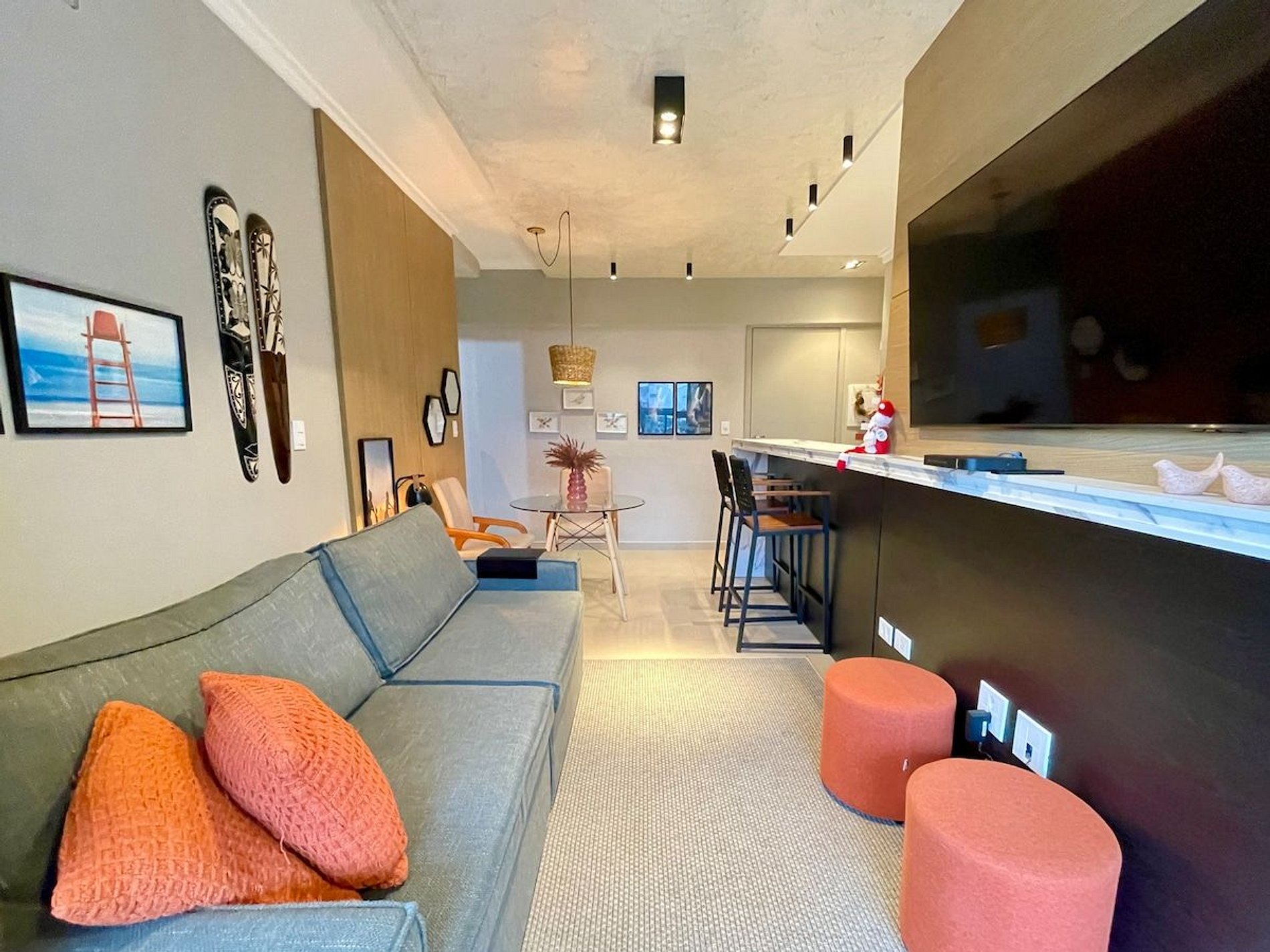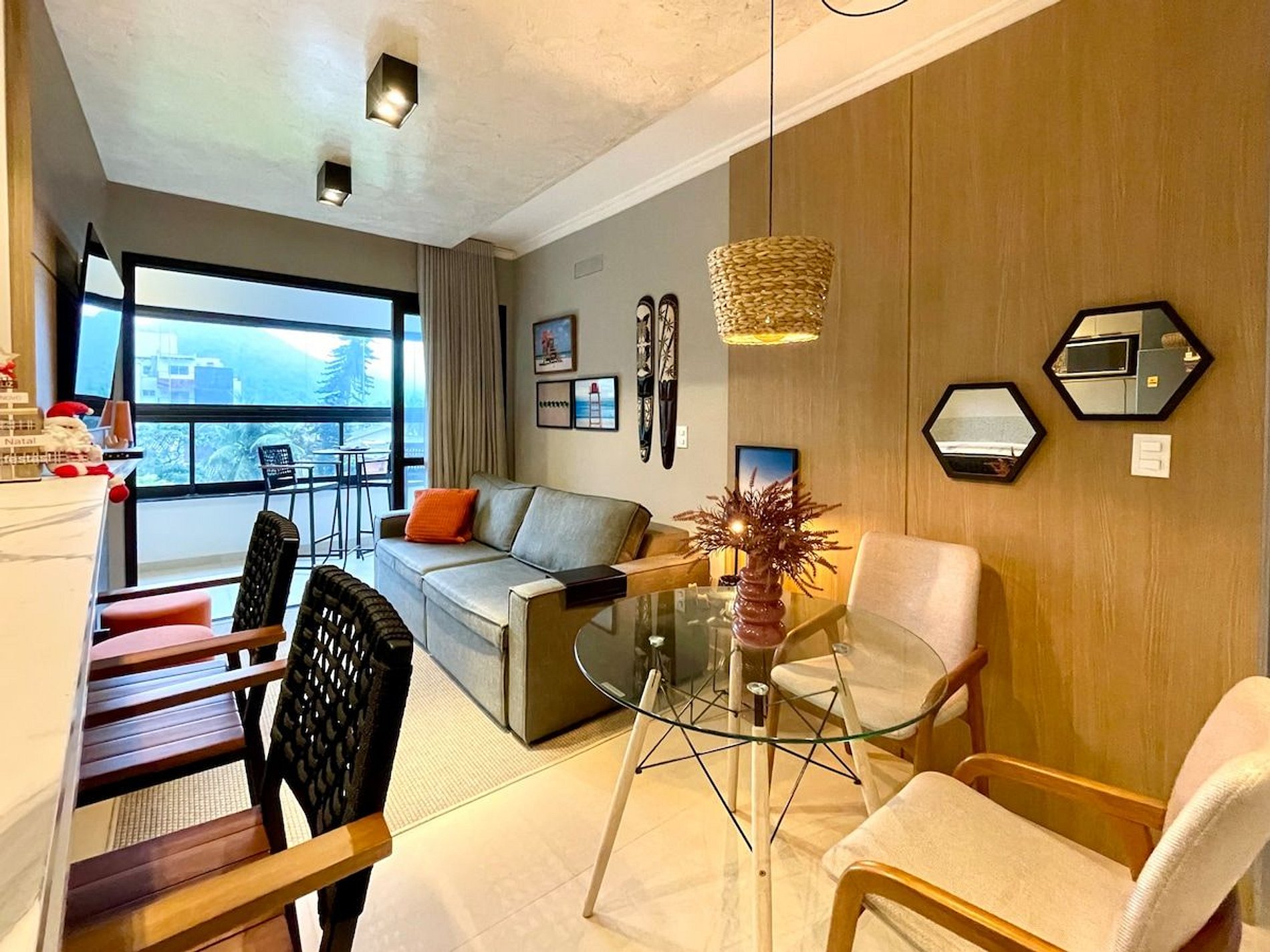 Apartamento novíssimo. Prédio entregue à um ano. Ambientes integrados e lindamente decorado e equipado. 2 suítes com ar condicionado Cozinha completa e equipada Varanda ampla com linda vista Sala integrada e cheia de estilo Varanda Gourmet com churrasqueira exclusiva 1 Vaga de garagem Wi-fi com 300megas Condomínio novo, com piscina na cobertura com um vista incrível, ampla área com mesas e cadeira, elevador e garagem. Áreas exclusiva para pets na cobertura.
