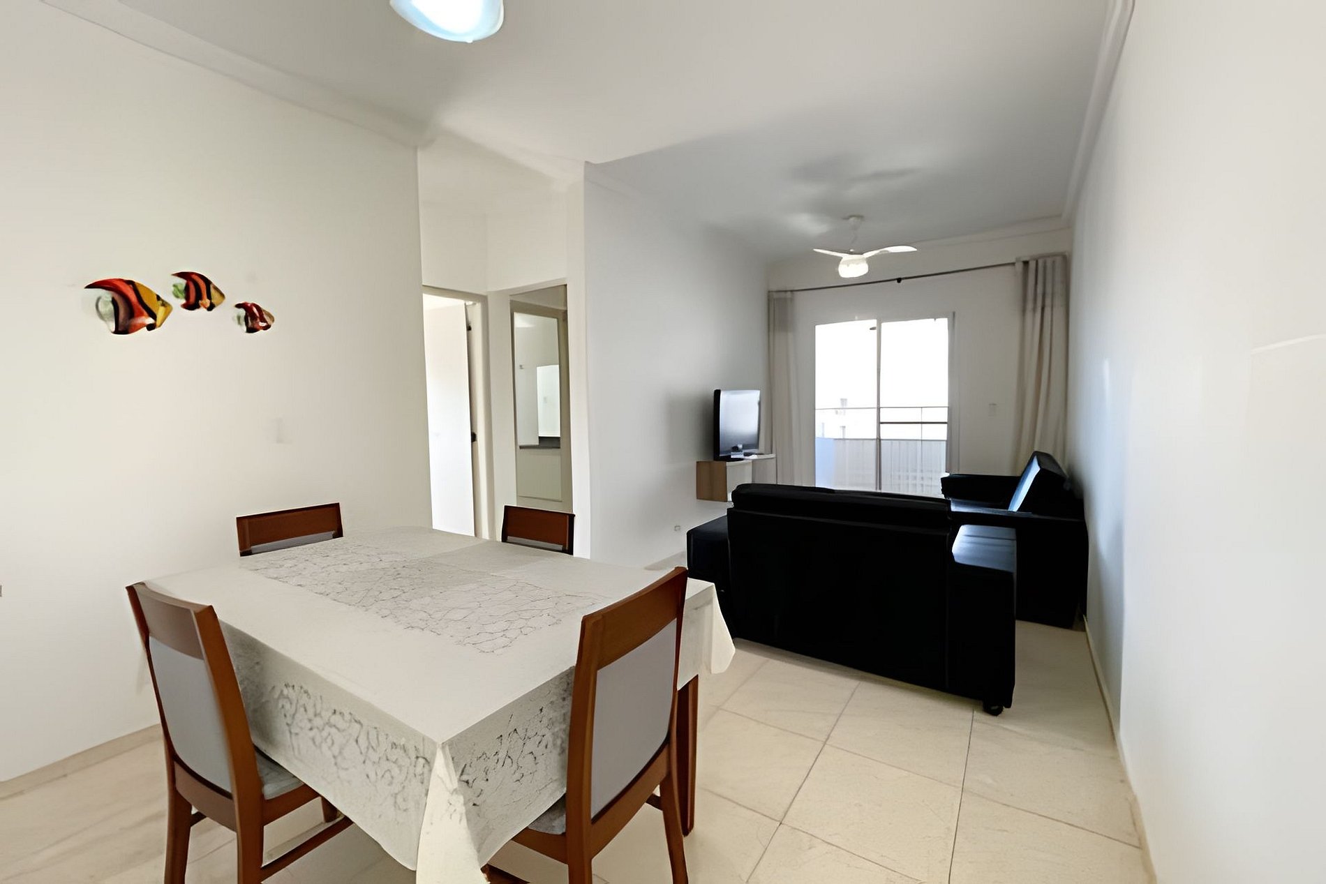 Apartamento amplo e bem iluminado. 1,5km do Tenório e Praia Grande. 600metros da orla do Itaguá. Cozinha e sala integradas Varanda Gourmet com churrasqueira 2 quartos, sendo uma suíte. Ventiladores de teto em todos os cômodos. Piscina no térreo Wi-fi 2 vagas de garagem