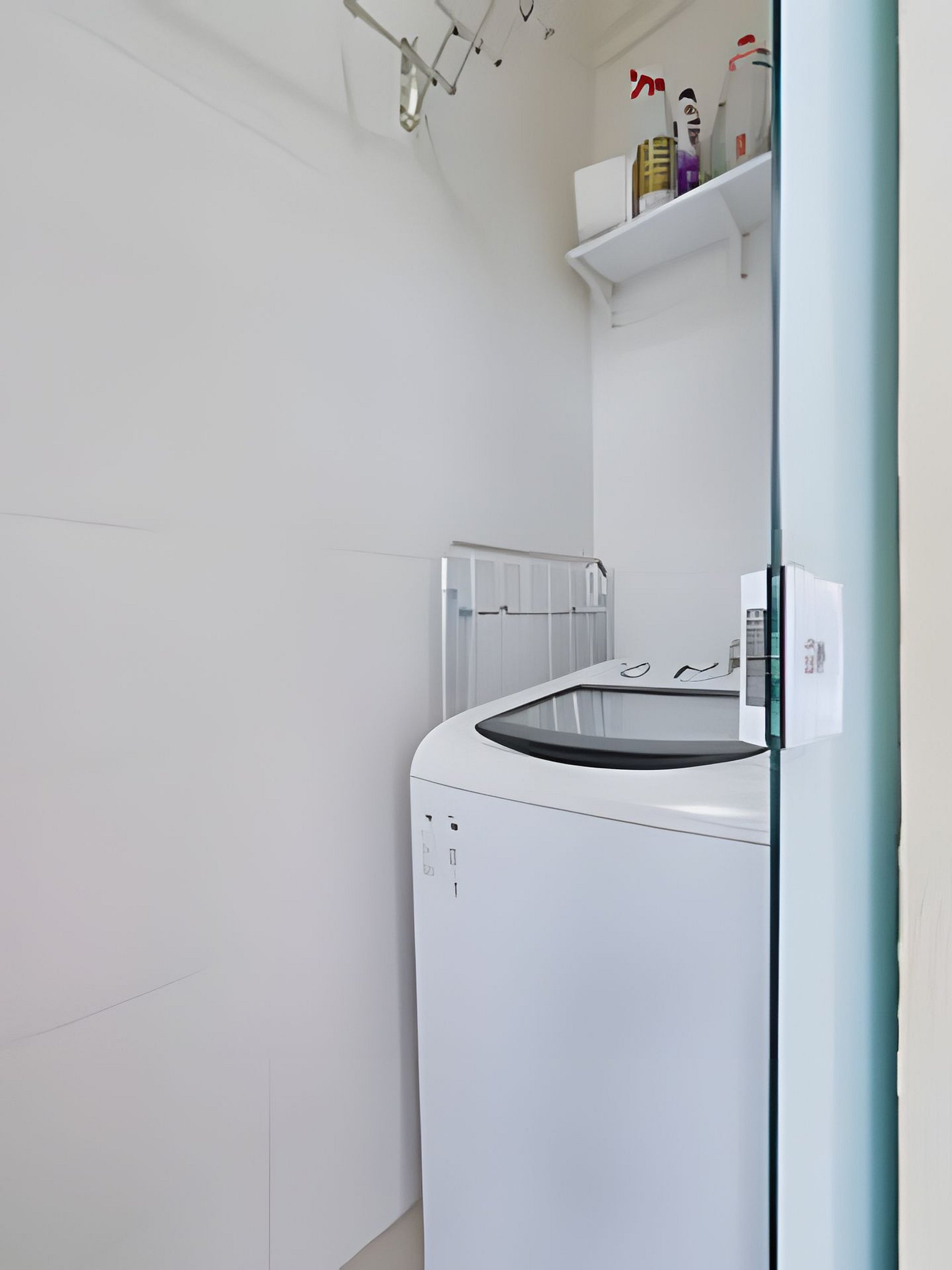 A Lavanderia tem uma máquina de lavar.