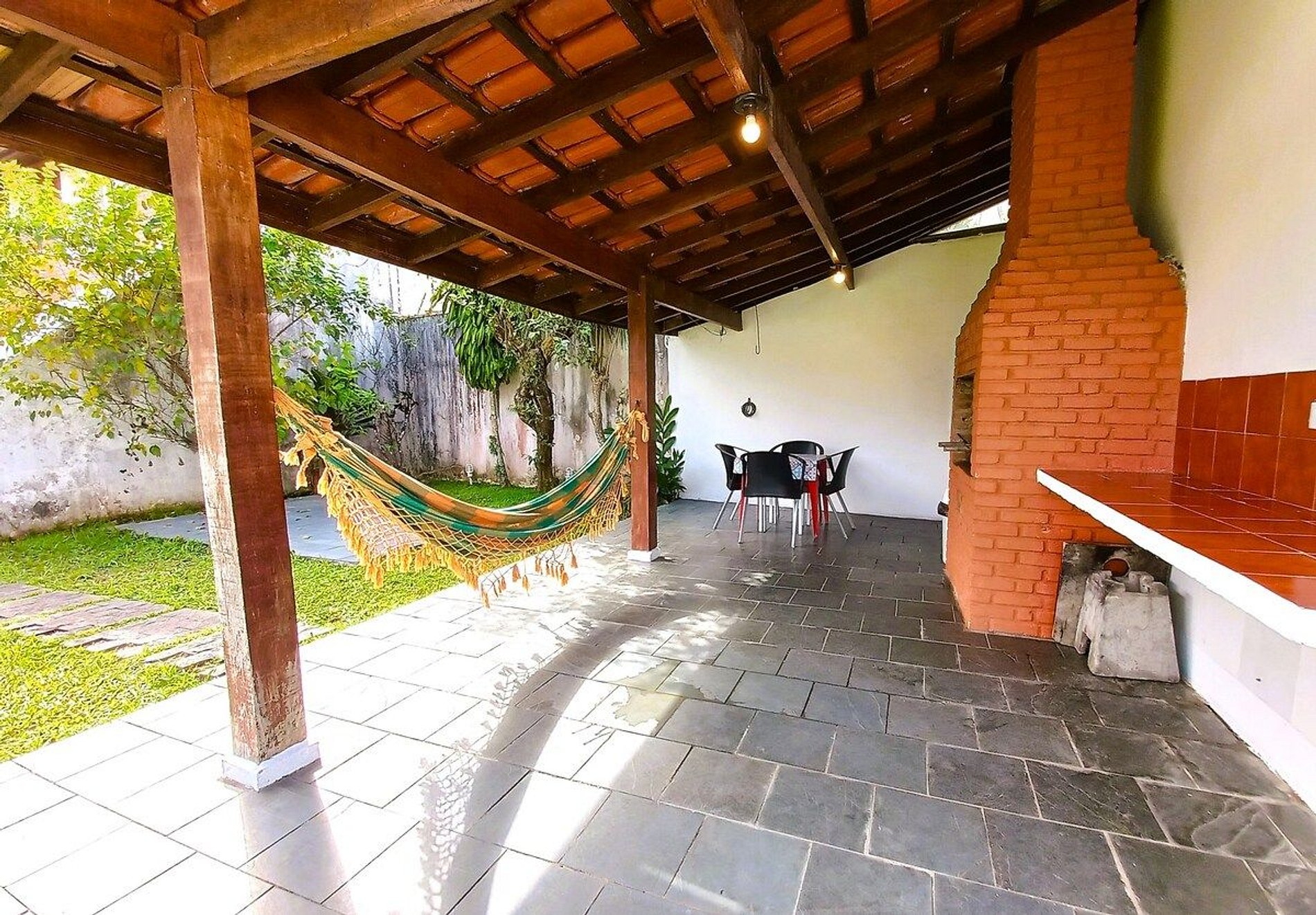O quintal é amplo e inteiramente cercado, ótimo para as crianças brincarem.